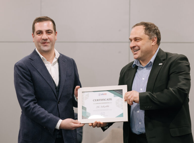 სს ,,საქკაბელმა’’ საერთაშორისო სტანდარტების დაცვისა და საკაბელო პროდუქციაზე შესაბამისი სერტიფიკატების მოპოვების პროცესში USAID – ის პროგრამისგან მხარდაჭერა მიიღო. 22 თებერვალს კომპანიას USAID-ის ეკონომიკური უსაფრთხოების პროგრამის ფარგლებში გამართულ დასკვნით ღონისძიებაზე კი სამახსოვრო სერტიფიკატი გადაეცა.