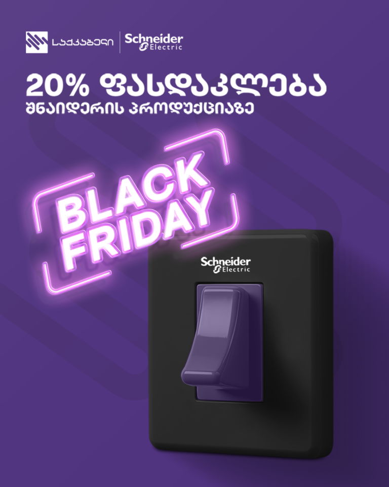 24 ნოემბერს Schneider Electric – ის პროდუქციაზე 20%-იანი ფასდაკლება „საქკაბელის“ ყველა ფილიალში დახვდება მომხმარებელს.